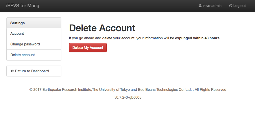 To delete your account, please click the [Delete My Account] button. The account information will be deleted within 48 hours.
