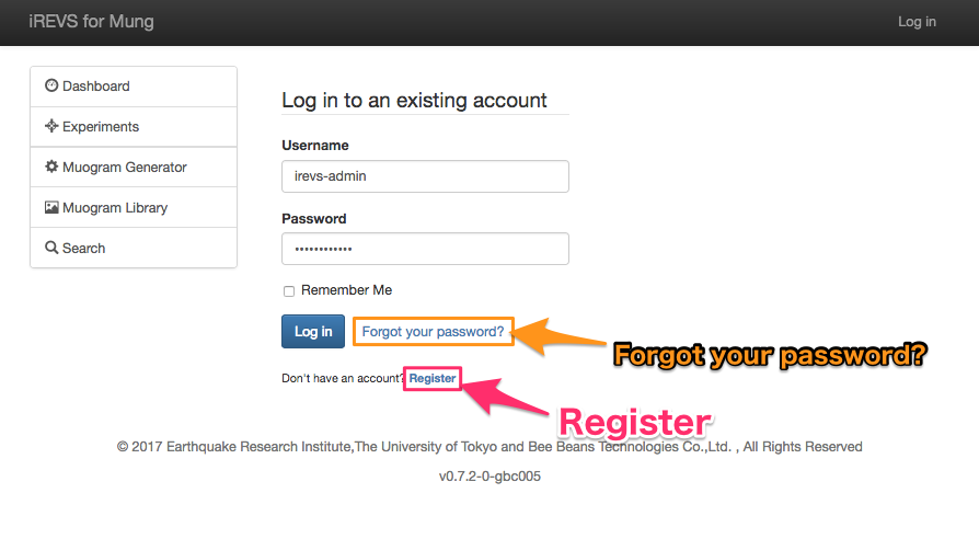 If you don't have a valid account, click "Register" to create a new account. Please refer to Registration.