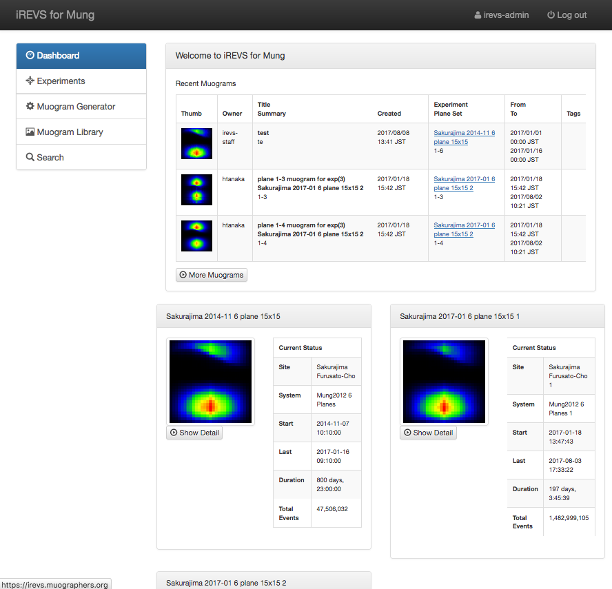 It consists of Muograms panel and Experiments summary panel.