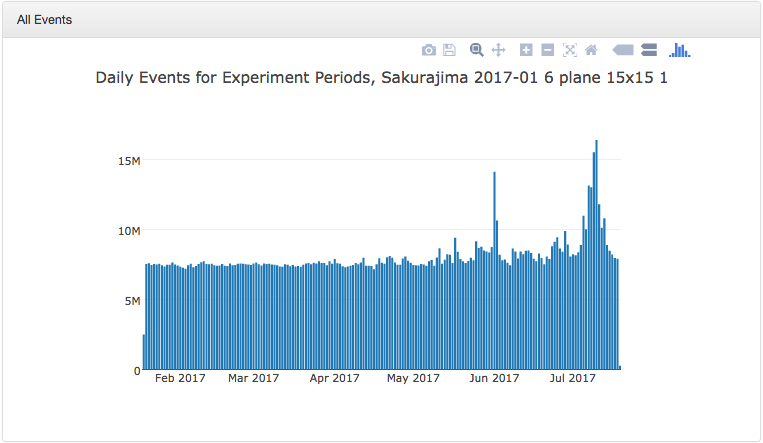 All events panel shows the number of events over the entire period of the corresponding experiment with a bar graph. Events are counted par day.