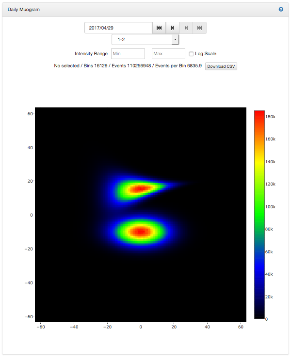 About Intensity Range, Log Scale, Download CSV, refer to Muogram Generator>Intensity Range.