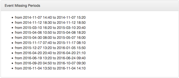 Event missing periods panel shows the missing period of the events caused trouble like power failure.