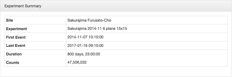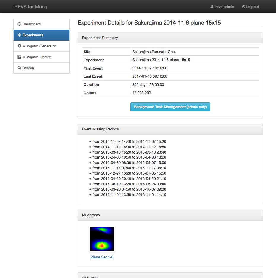 Experiment details show summary information, event missing period, Statistics Muogram, statistics, Daily Muogram of the experiment.