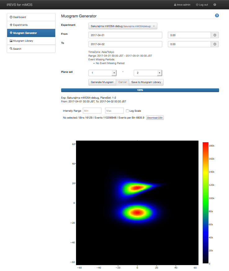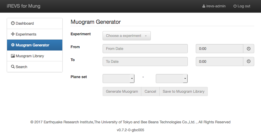 "Muogram Generator" can generates the Muogram by specifying the experiment, the period and the plane set.