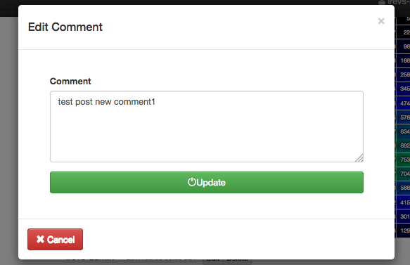 You can update the comment if you edit the comment and click [Update] button. To cancel editing comment, click [Cancel] or click X button at the to right.