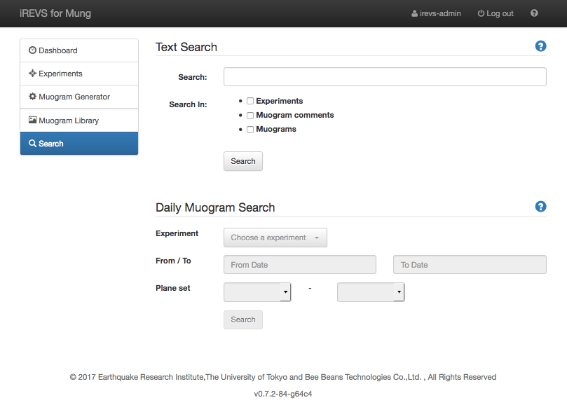 In the Text Search, you can search Experiments, statistics Muogram and the comments of statistics Muogram.